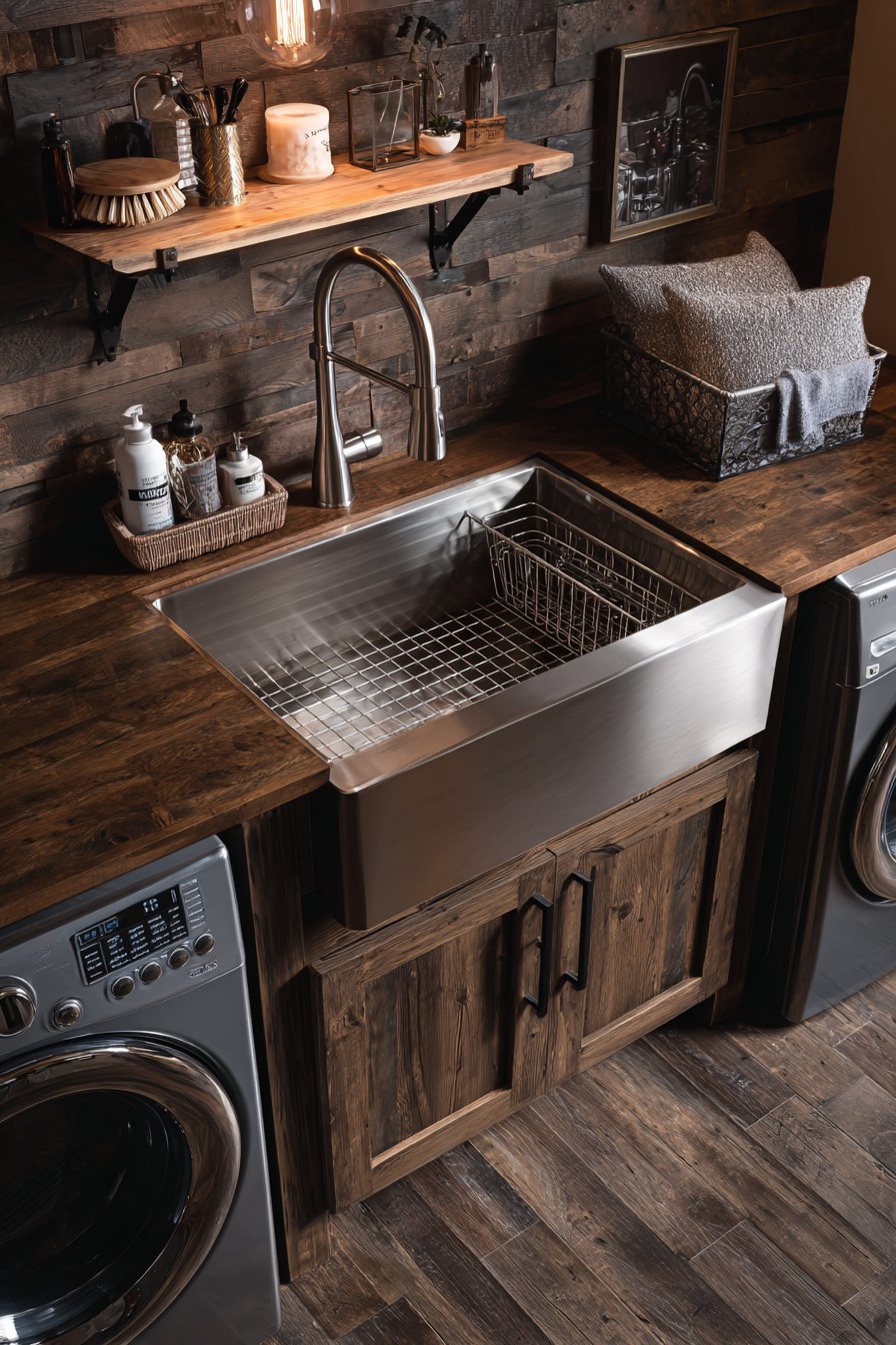 Deep basin utility sinks (typically 10 to 12 inches deep) are preferable over shallow versions for most laundry room applications. They handle large items like soaking comforters or rinsing mop heads without splashing. Stainless steel, fireclay, and heavy-duty plastic are all excellent material choices that hold up to heavy use.