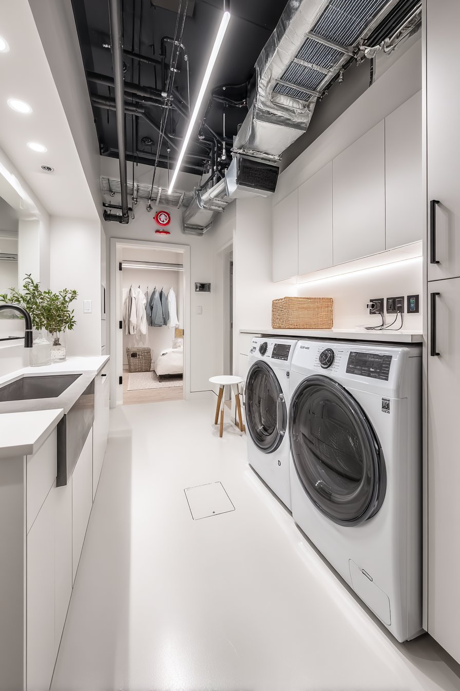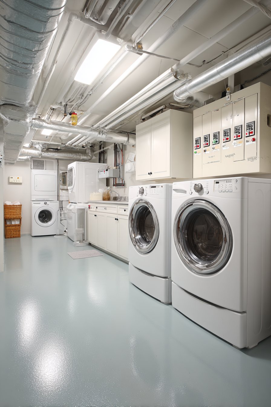 Consider how the laundry room integrates with other basement functions. Some homeowners share the basement with a storage area, home gym, or recreation room. Zoning the space with clear visual or physical boundaries keeps the laundry area contained and organized without sacrificing flow.