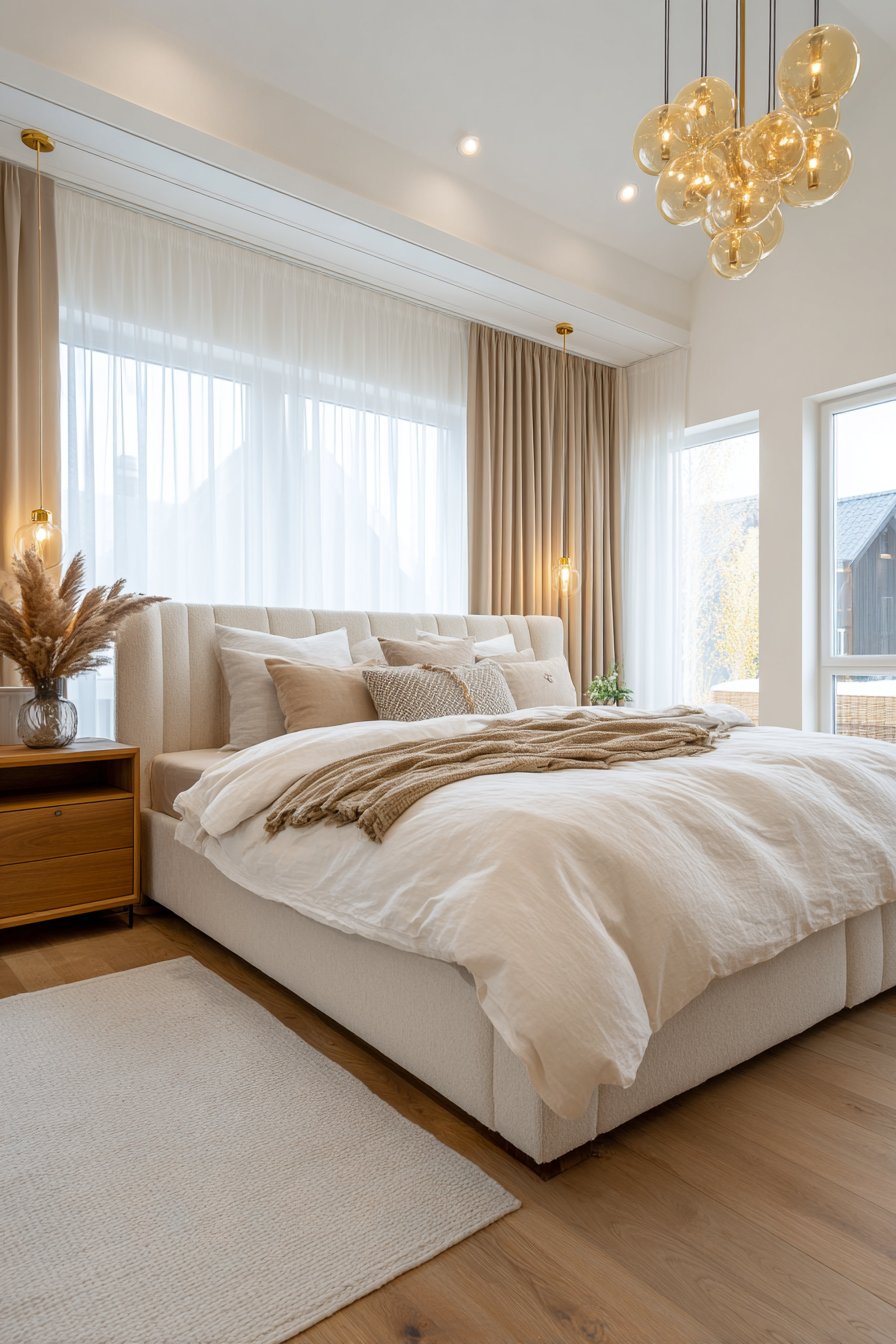 Layered lighting provides the most versatile solution. Combining ceiling fixtures with bedside lamps and accent lighting allows you to adjust brightness throughout the day. Install dimmers to control your main ceiling light’s intensity from energizing morning brightness to soothing evening ambiance. This flexibility accommodates different activities while maintaining the option for task-specific lighting when needed without overwhelming your space.