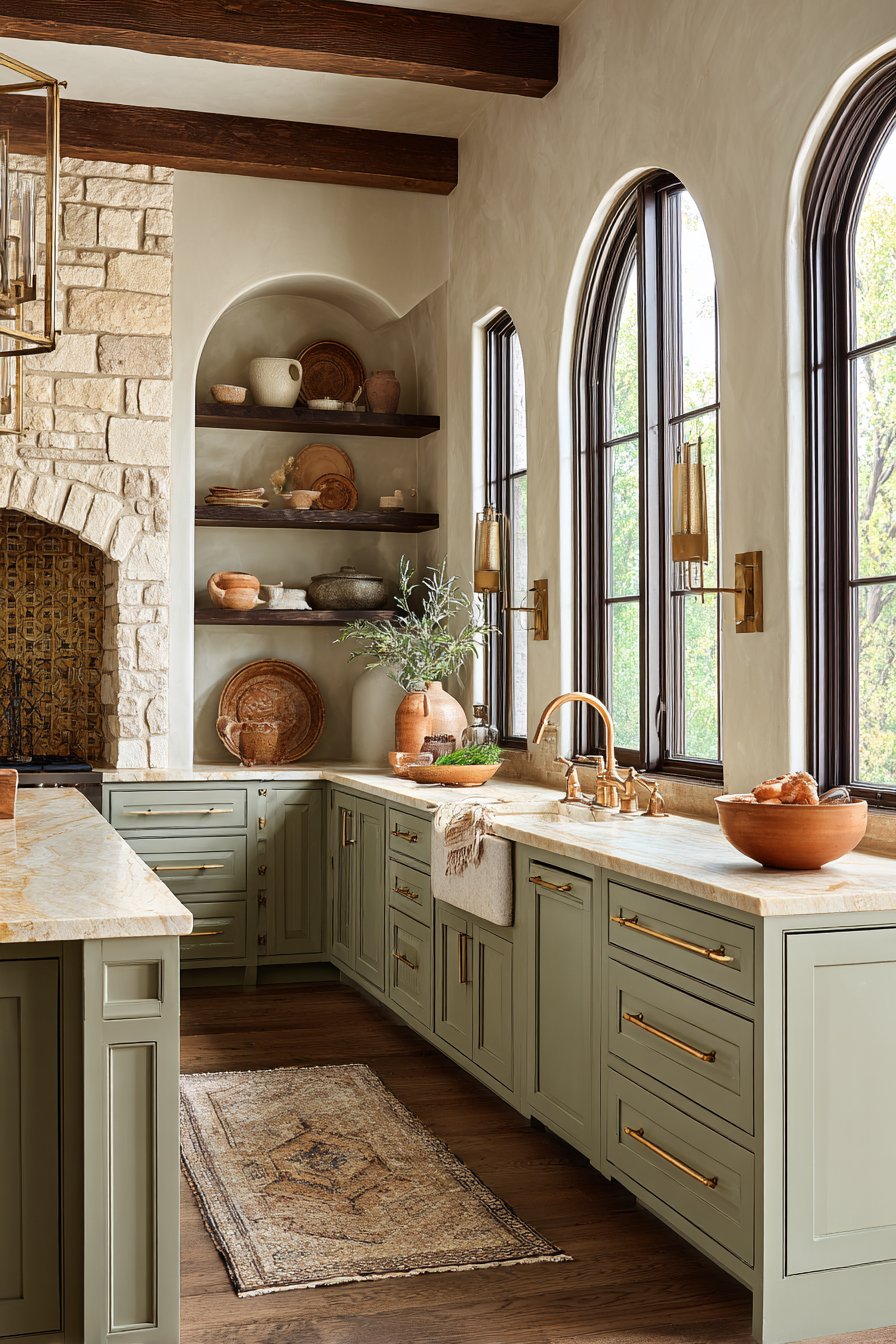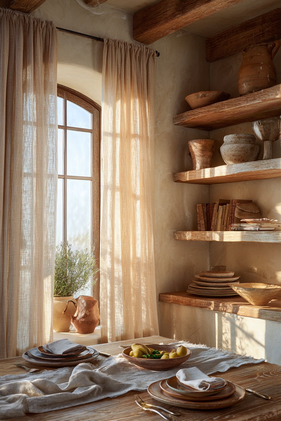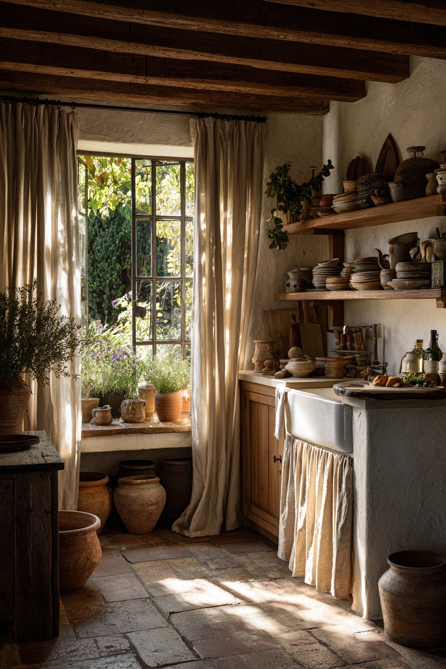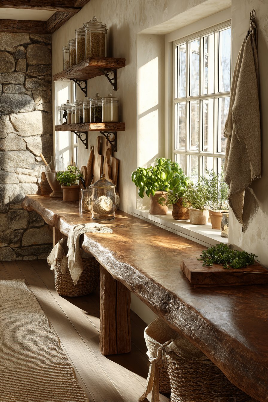 Live plants or fresh herbs in terracotta pots inject life and natural fragrance into your kitchen environment. Wooden utensil holders, linen tea towels, and rattan placemats layer additional natural textures. These elements work together to create a sensory experience that feels inherently welcoming.
