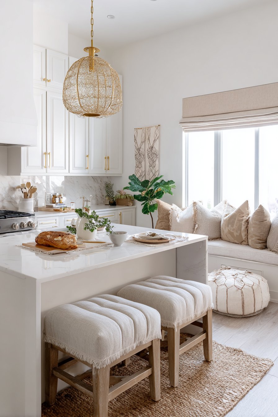 Cushioned seating transforms kitchen dining areas into inviting gathering spots where people naturally linger. Upholstered bench seats or padded bar stools encourage extended conversations over coffee or meals. Choose durable, washable fabrics that withstand kitchen environments while maintaining their welcoming appearance.