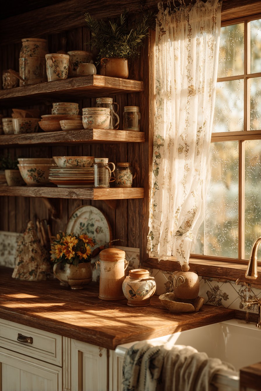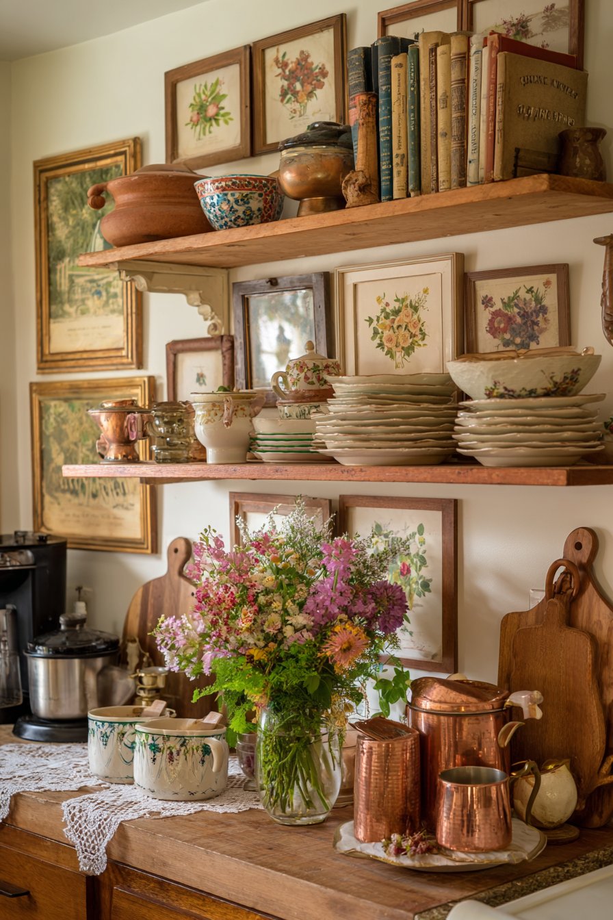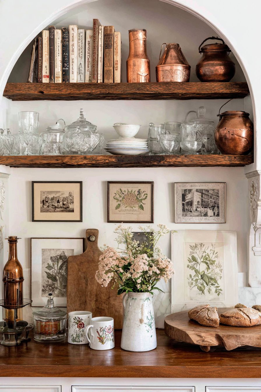Curated collections of cookbooks, pottery, or glassware add visual interest without creating clutter. Grouping similar items by color or style creates cohesive displays that feel intentional. Rotating seasonal items keeps displays fresh while maintaining the overall cozy aesthetic.