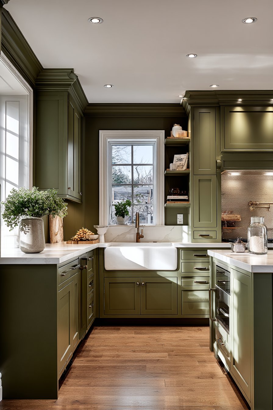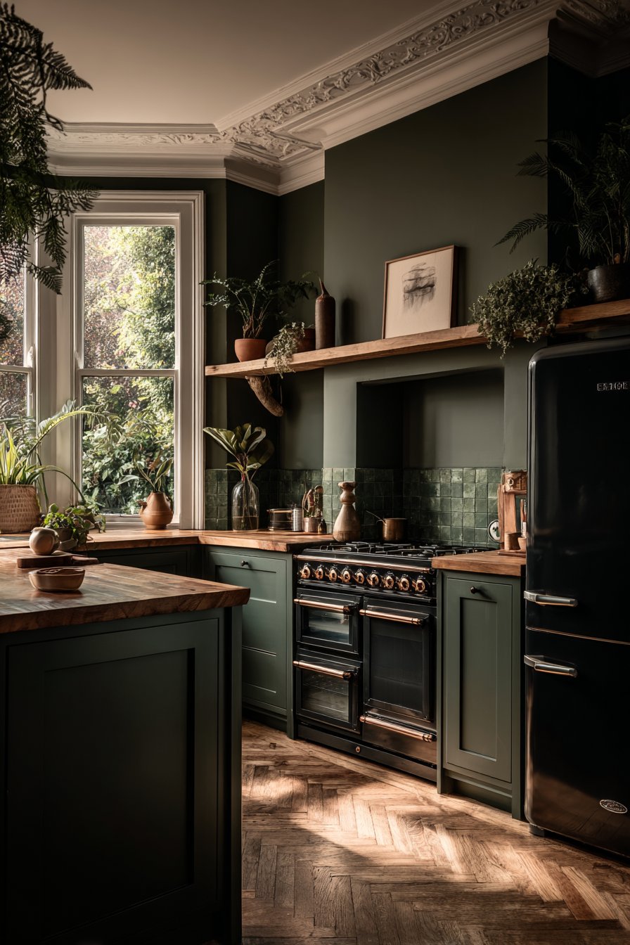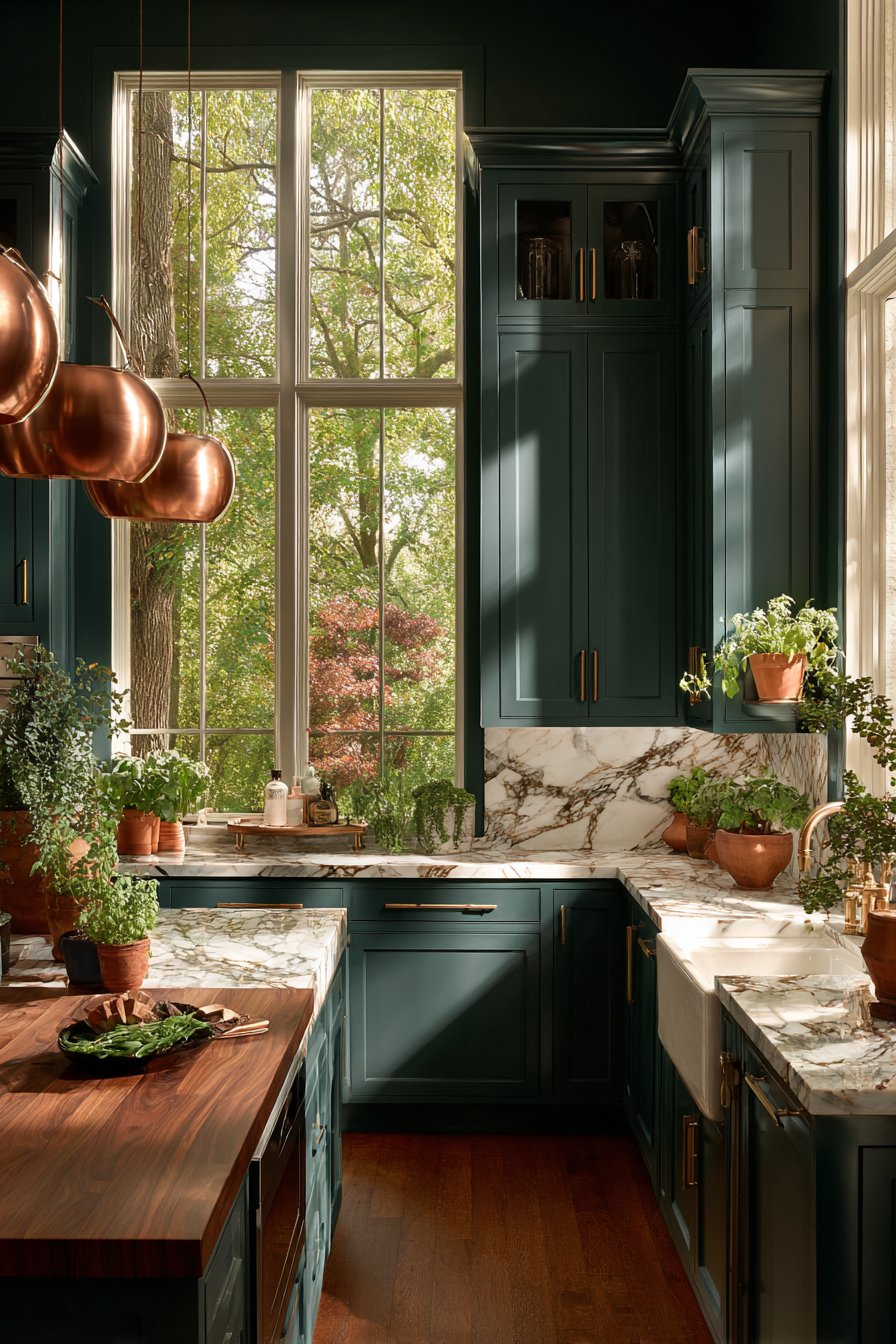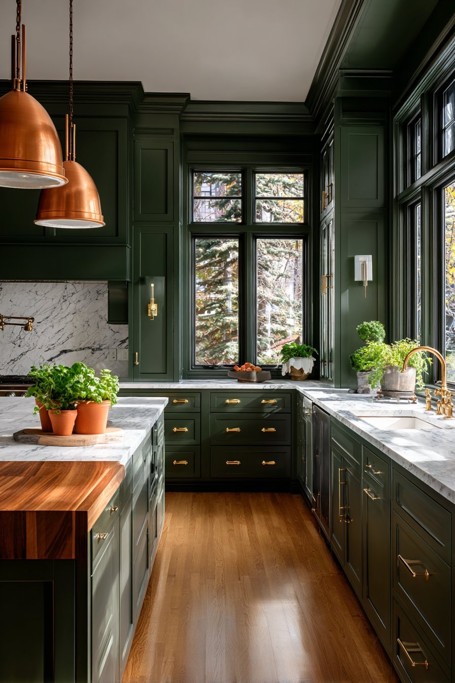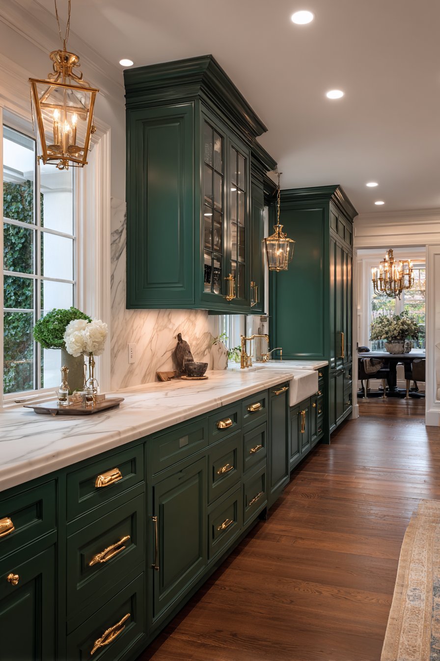 Dark green kitchens transcend temporary design fads because they draw from historical precedent. Victorian and Georgian homes featured deep green cabinetry and wall treatments, establishing this color’s association with refined taste. Unlike trendy colors that date quickly, dark green maintains enduring appeal across decades and design movements.