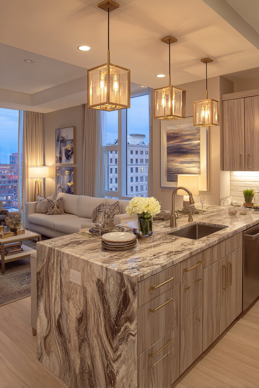 Material consistency creates tactile and visual harmony that reinforces spatial flow between your kitchen and other areas. When countertop materials echo coffee table surfaces or kitchen metals match living room lighting fixtures, these connections register subconsciously, making spaces feel unified. This doesn’t mean everything must match exactly—variation within a cohesive material family adds interest.