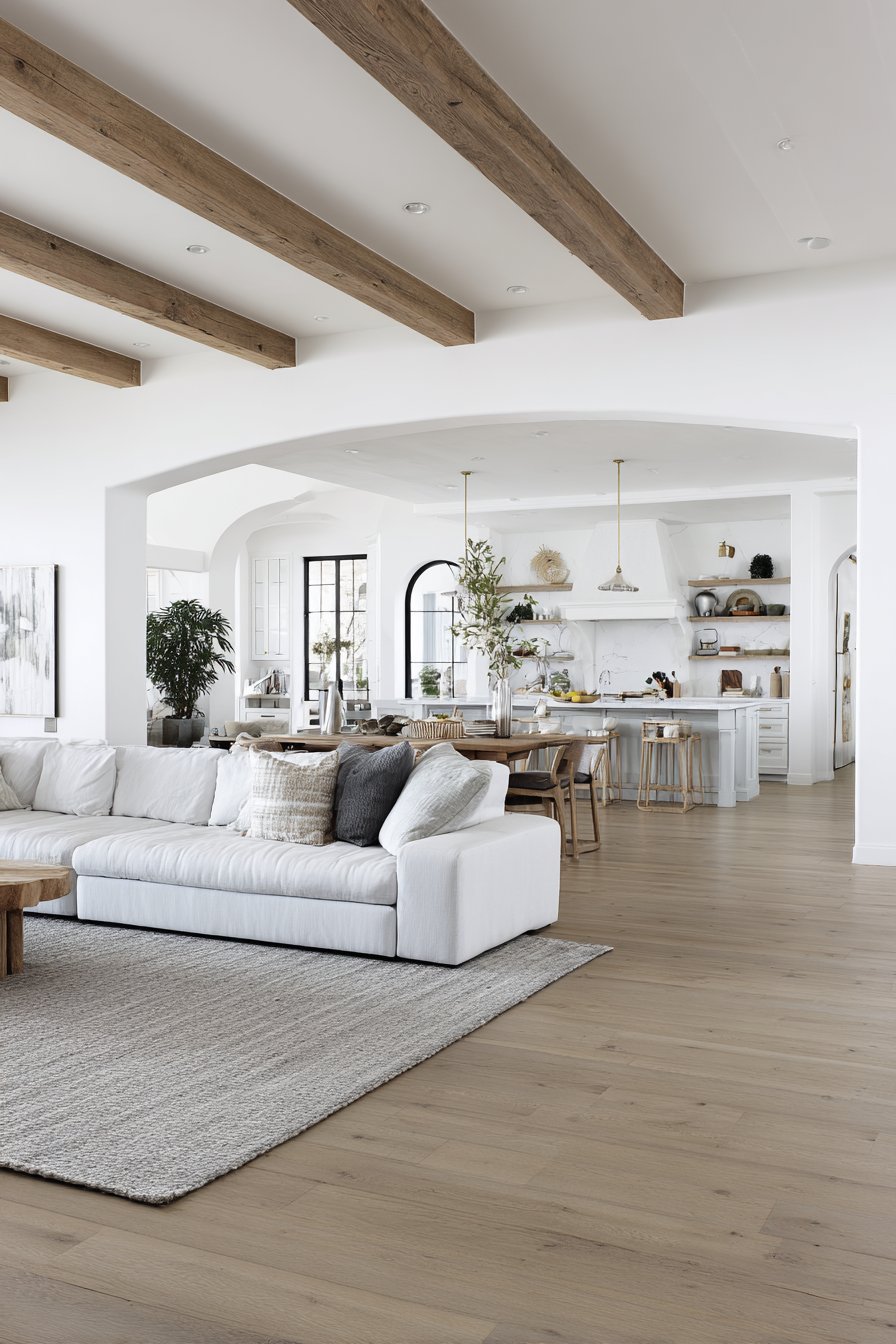 Don’t forget the power of accent colors to create interest while maintaining cohesion. A color used in living room pillows can reappear in kitchen bar stools or small appliances, creating visual connections that strengthen the sense of flow. These intentional repetitions make the entire space feel curated and thoughtful.