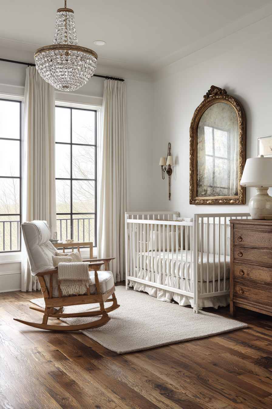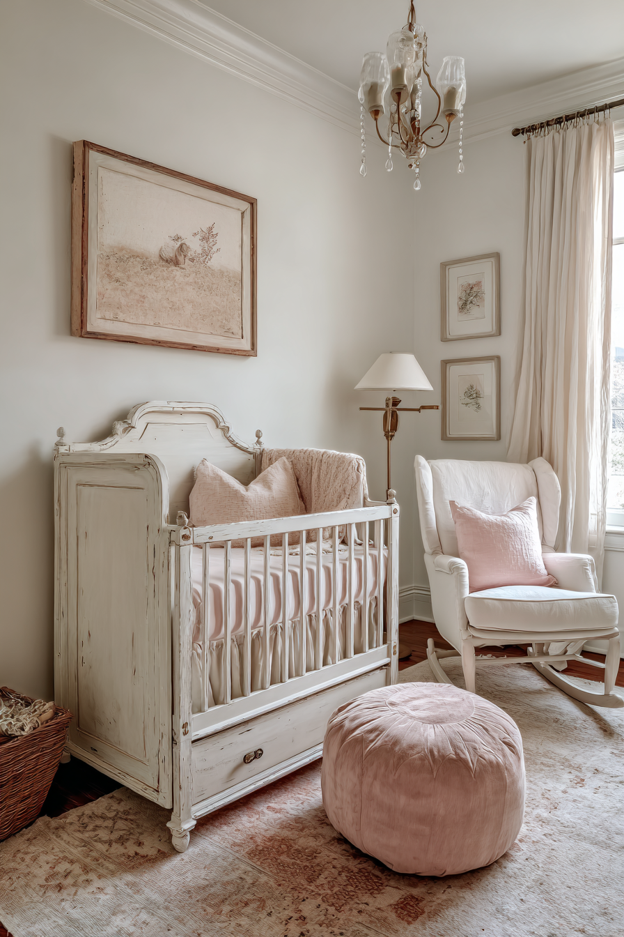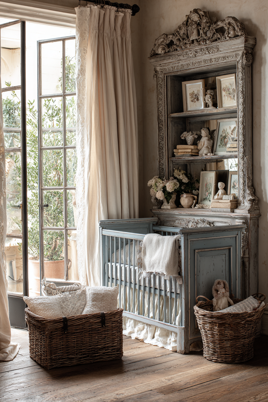 Carefully curated accessories bring personality and finishing touches to French country nurseries. Vintage picture frames displaying family photos or botanical prints create sentimental connections. These decorative elements tell stories and establish the room’s unique character. The mix of old and new creates a collected aesthetic that feels personal rather than catalog-perfect.