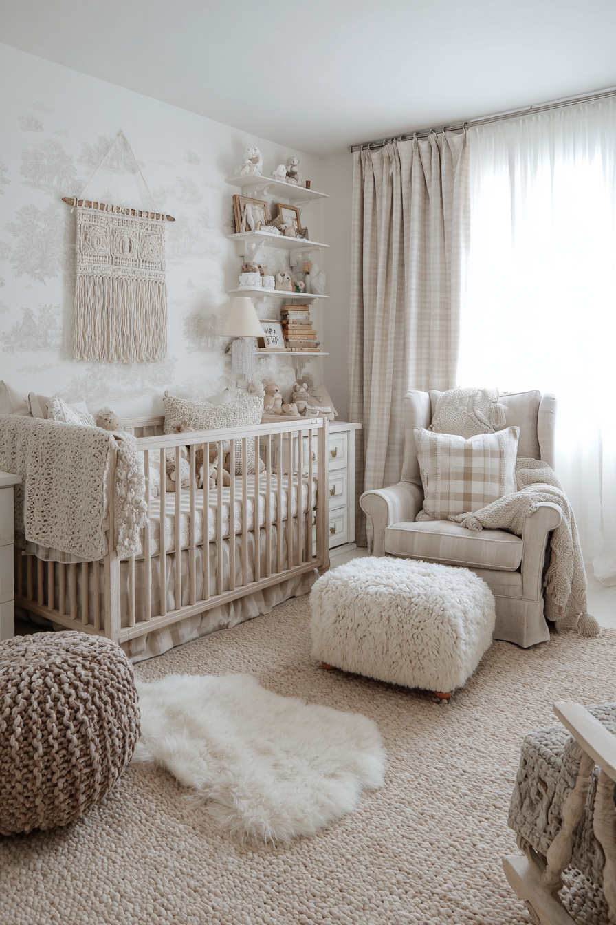 Layering textiles creates depth and coziness essential for nursery spaces. A plush area rug grounds the room while providing soft landing spots for crawling babies. Throw pillows and blankets in coordinating fabrics add comfort to rocking chairs and reading nooks. These touchable elements engage multiple senses and contribute to the room’s welcoming atmosphere.