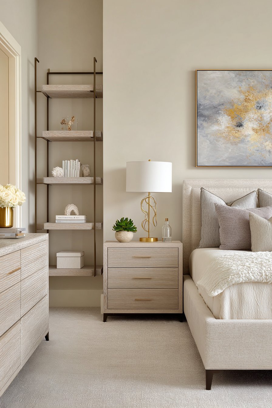 Keep bedside tables as minimal as possible with only daily essentials visible. Use drawer organizers to maximize efficiency and prevent junk drawer syndrome. Hidden storage in unexpected places, like under the bed or behind doors, keeps belongings accessible without visual noise.