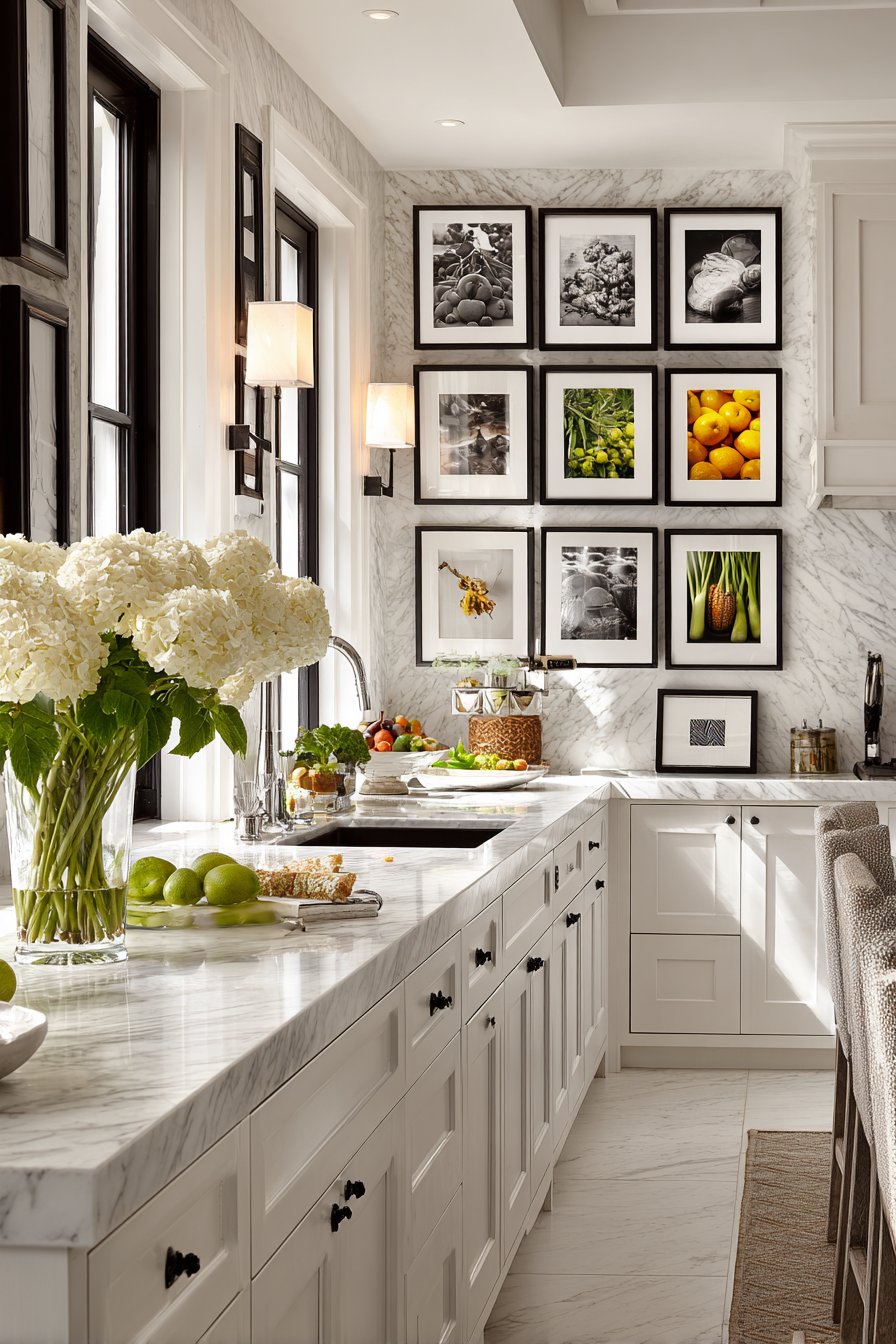 Gallery walls bring artistic sophistication to kitchen spaces while celebrating culinary culture. Food photography, whether vintage market scenes or contemporary minimalist shots, adds personality without overwhelming the cooking environment. This approach works exceptionally well in kitchens with neutral color palettes that need visual interest.