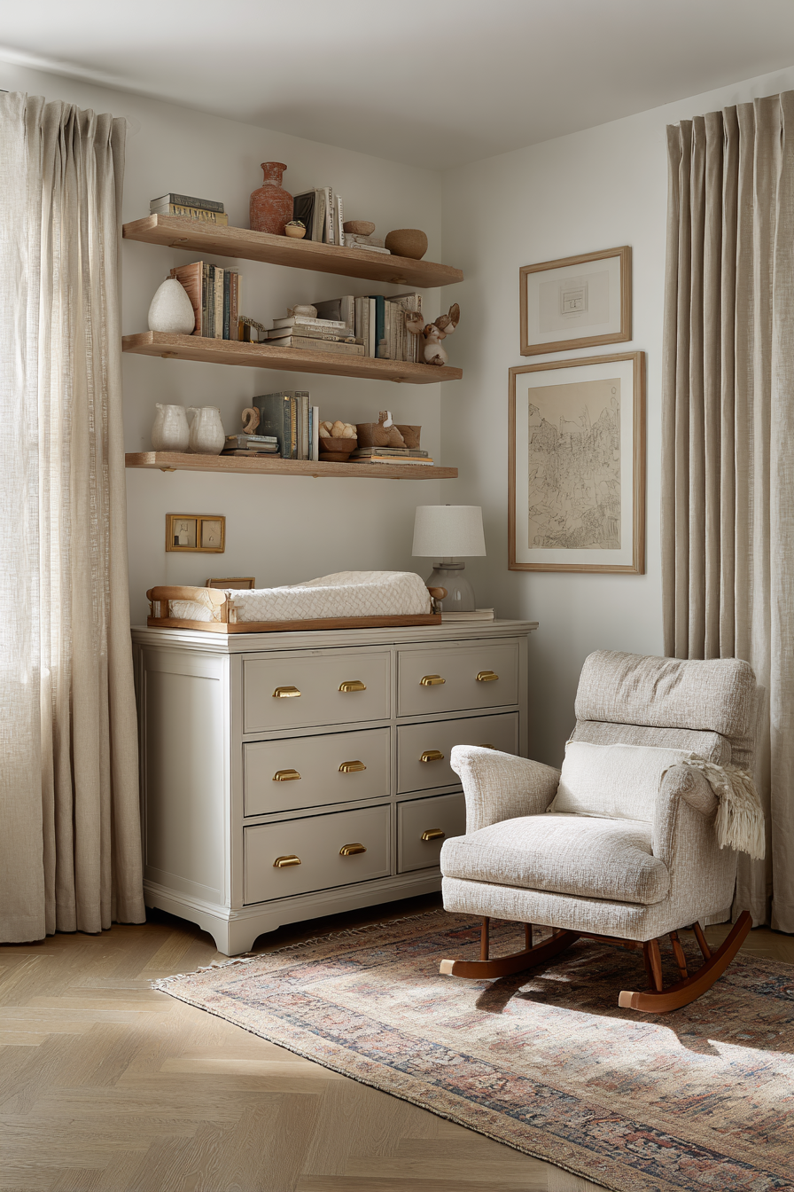 Focus your budget on furniture that performs multiple roles rather than specialized pieces. Storage ottomans provide seating while hiding toys and supplies. A comfortable glider with good back support serves nursing needs initially, then becomes a cozy reading chair for bedtime stories.