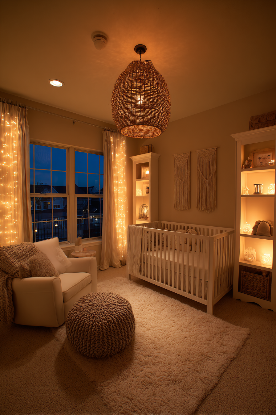Layered lighting creates the sophisticated atmosphere that defines luxury spaces. Overhead fixtures provide general illumination, while task lighting assists nighttime feedings and diaper changes. Ambient lighting through floor or table lamps adds warmth and dimension that single ceiling fixtures cannot achieve.