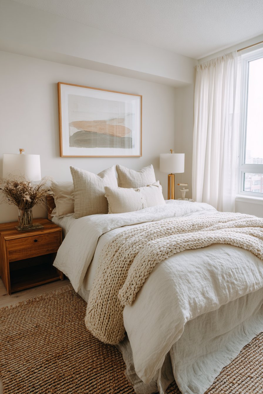 Neutral doesn’t mean boring or lifeless. The key is creating depth through varied tones and textures. Combine warm creams with cool grays, or layer different shades of white for sophisticated dimension. Adding natural materials like linen, wool, and wood introduces organic warmth that prevents the space from feeling sterile.