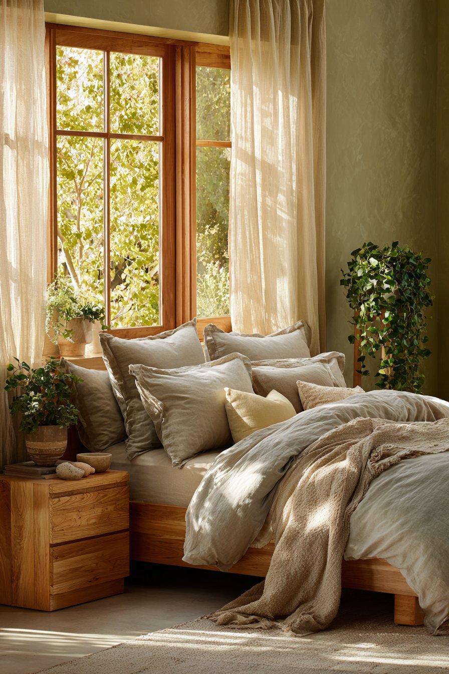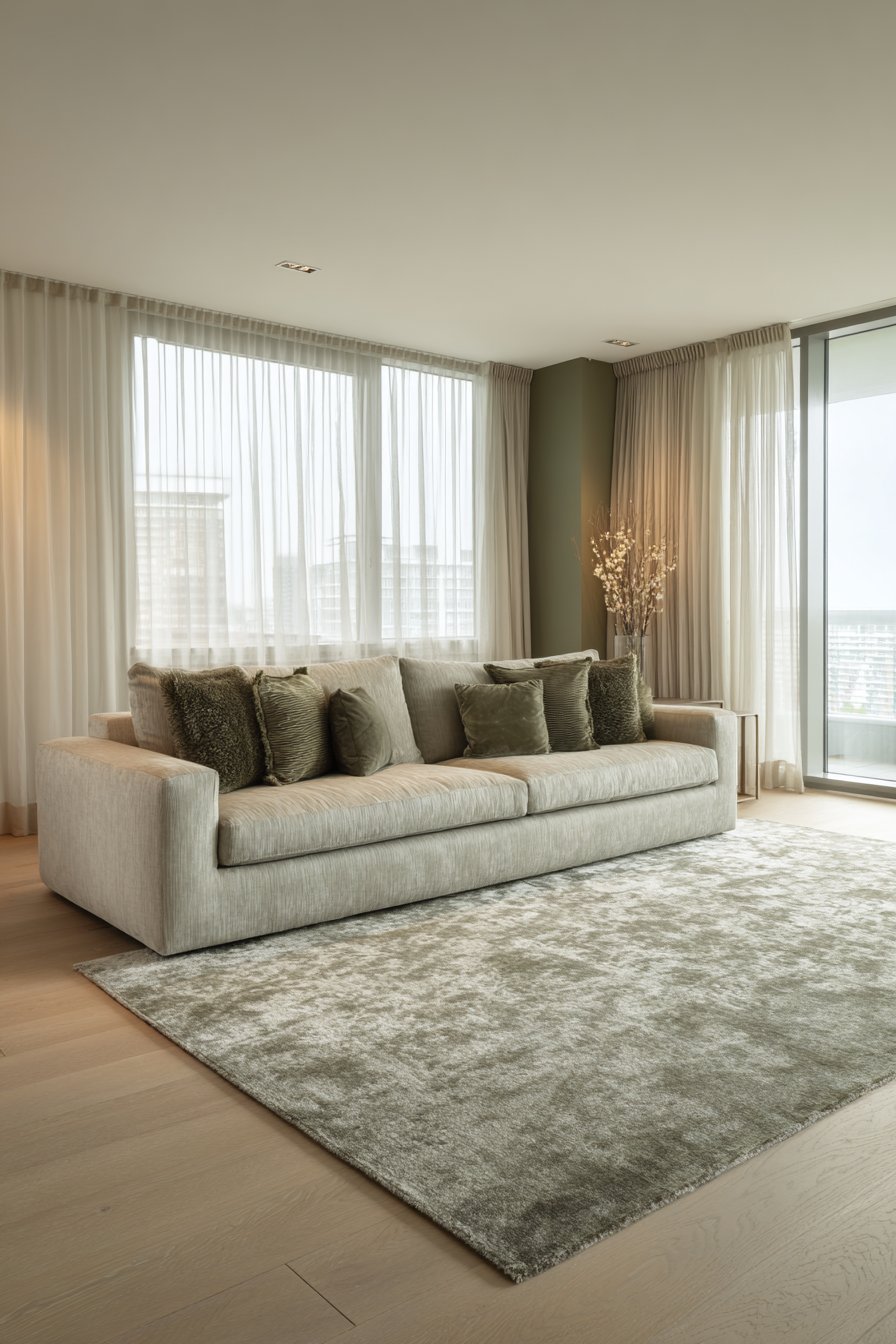 - Use sheer window treatments to maximize natural light with darker olive choices