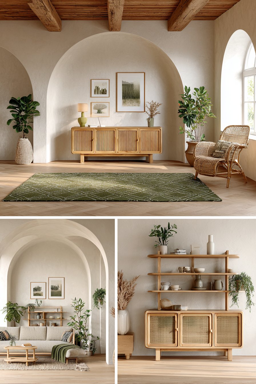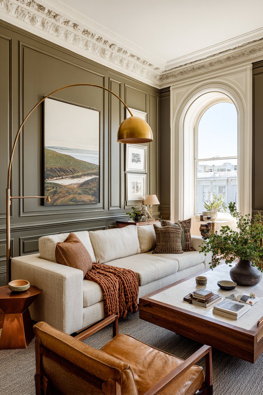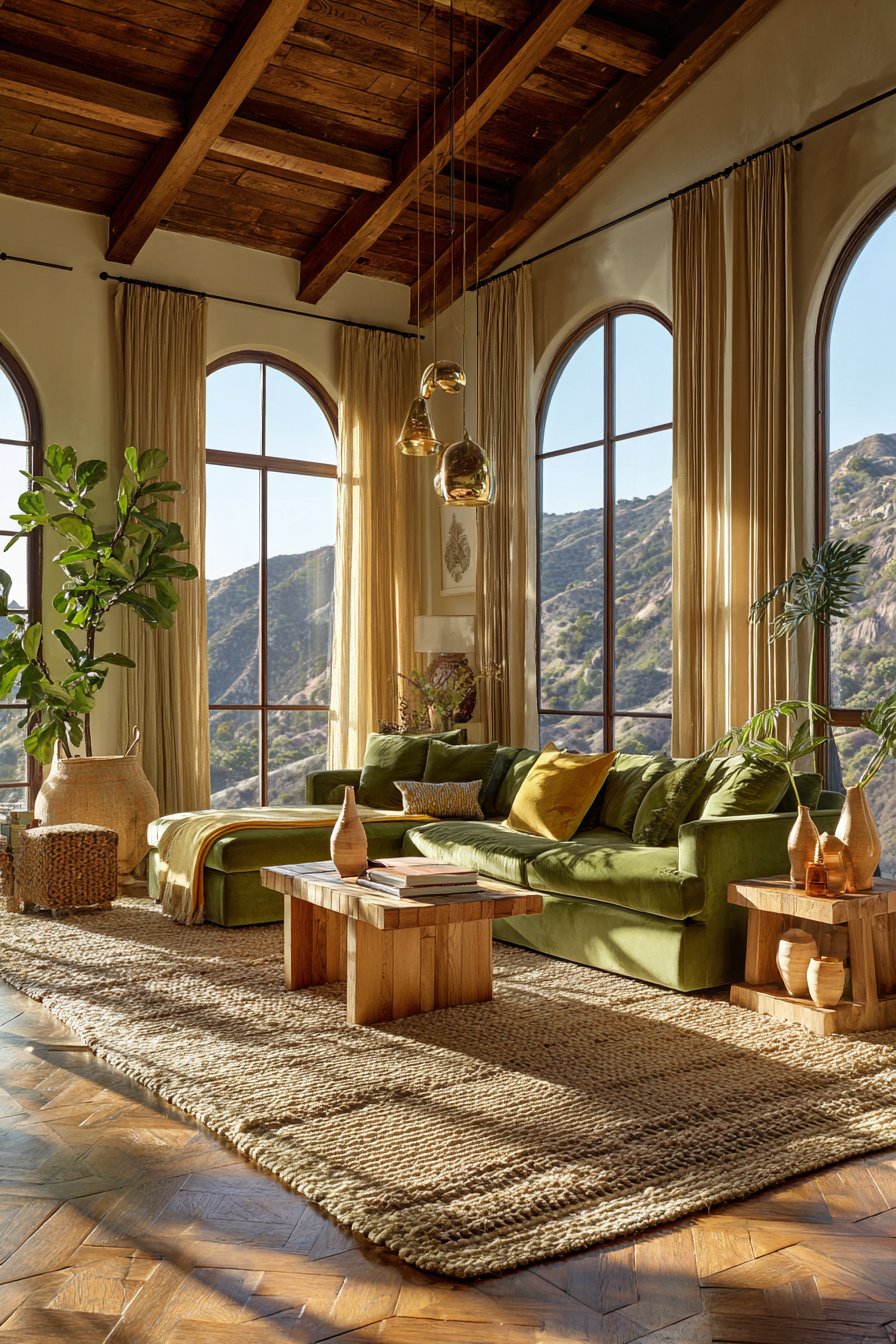 Traditional and transitional styles use olive green more conservatively, often in fabrics, draperies, or as sophisticated wall colors paired with classic moldings. Bohemian and eclectic spaces allow for adventurous olive combinations with multiple patterns, textures, and global influences.