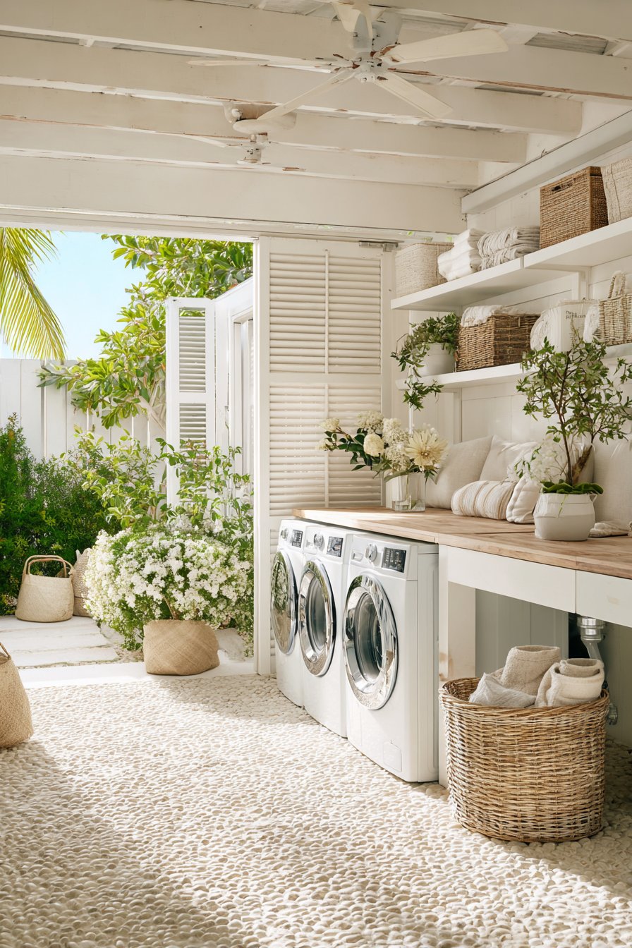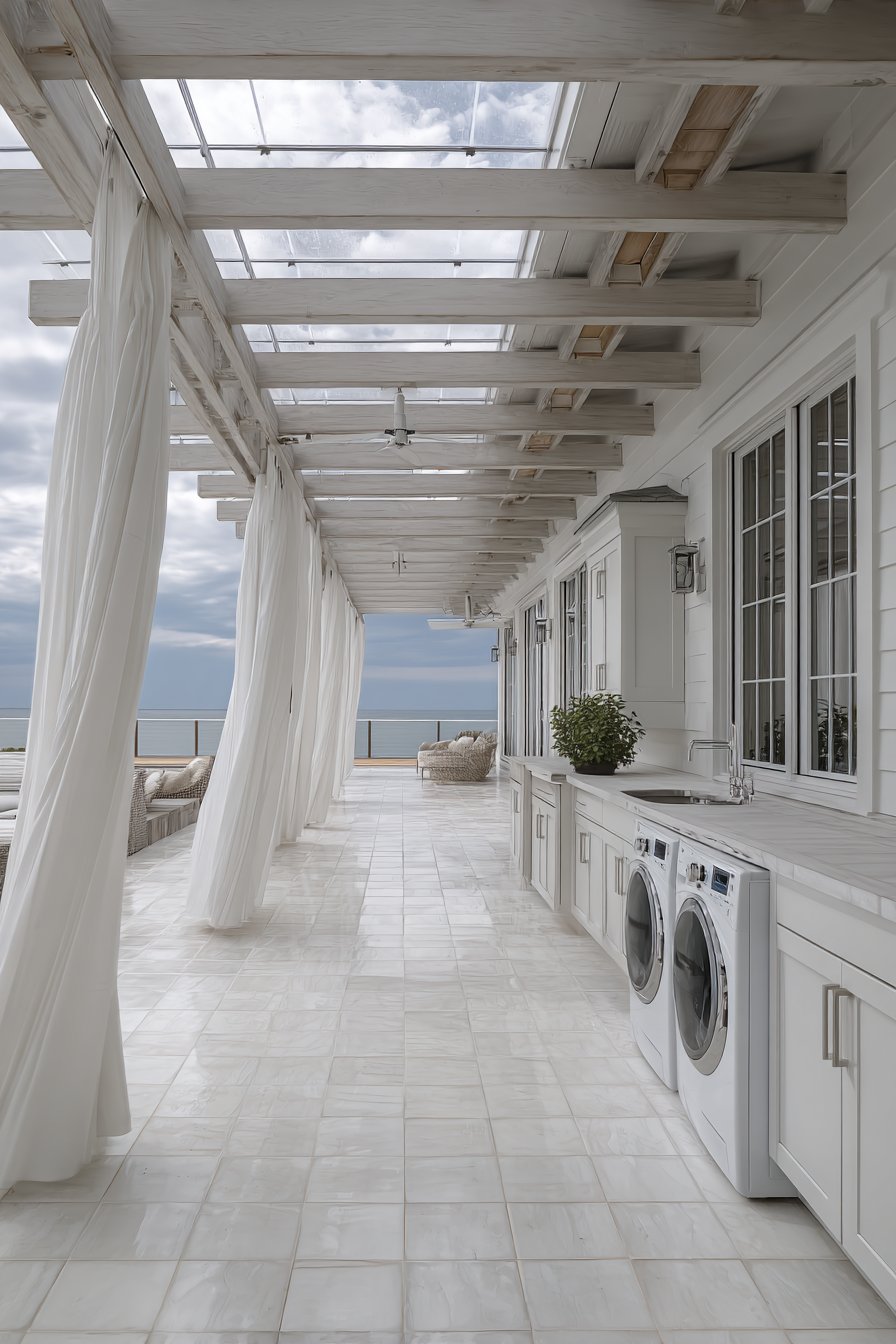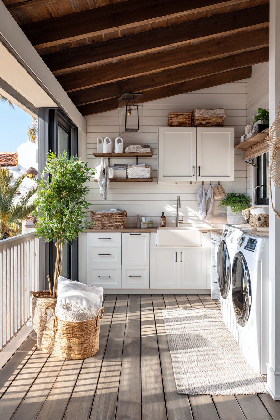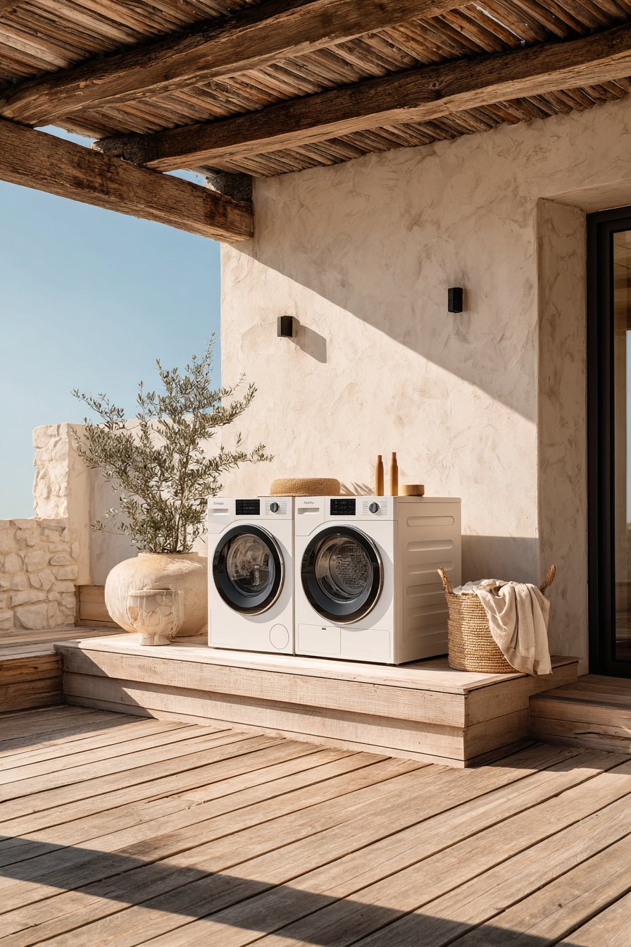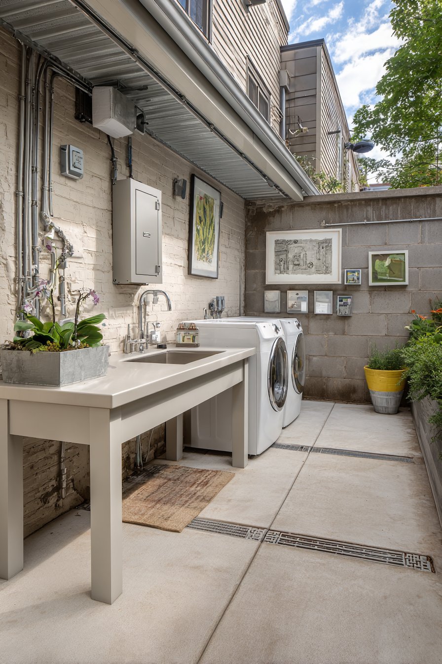 - Use consistent materials and finishes across the laundry area and adjacent outdoor spaces