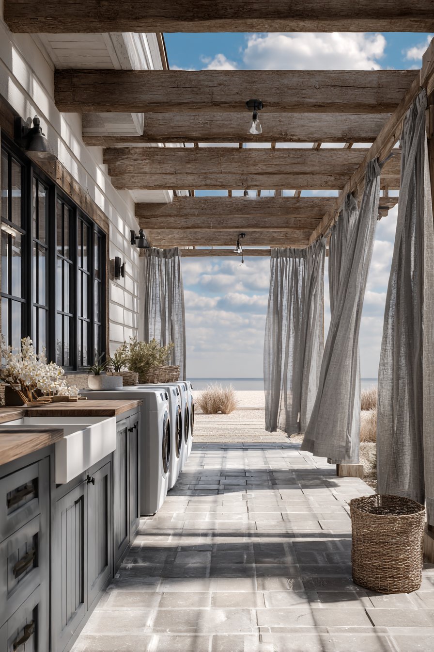 Beyond overhead coverage, the floor and wall materials matter enormously. Avoid using untreated wood near appliances or plumbing connections. Opt for sealed concrete, porcelain tile rated for outdoor use, or composite decking that handles moisture without warping. Every material in your outdoor laundry room should be rated for exterior applications — don’t repurpose indoor materials because they look convenient.