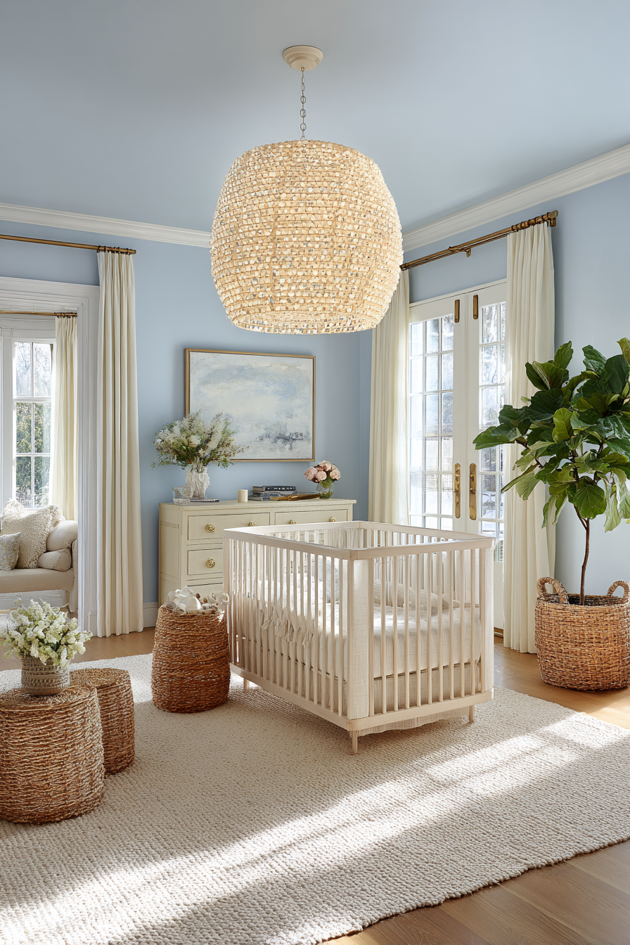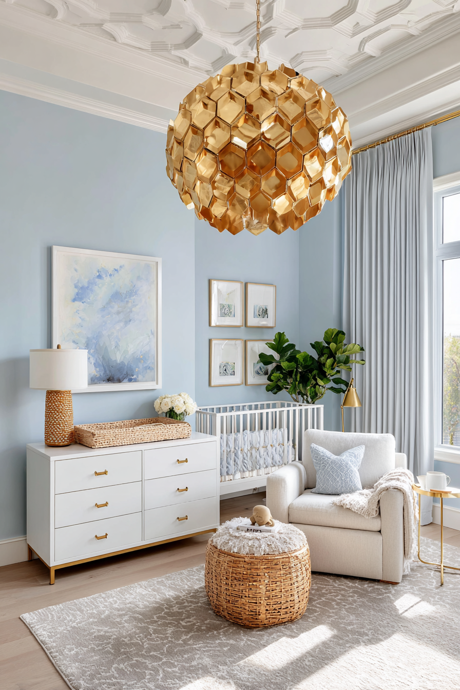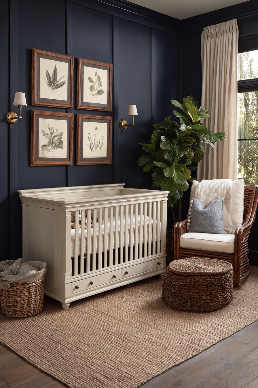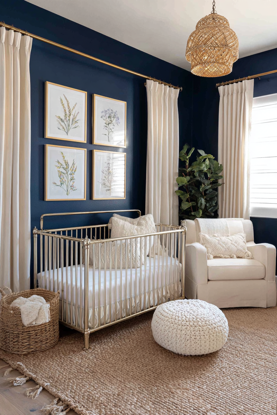 Consider a predominantly blue nursery anchored by rich navy accents rather than baby blue everywhere. Pair it with warm woods, brass fixtures, and cream textiles for a look that feels current and grown-up. This approach creates a space that transitions beautifully from infancy through childhood without requiring a complete overhaul.