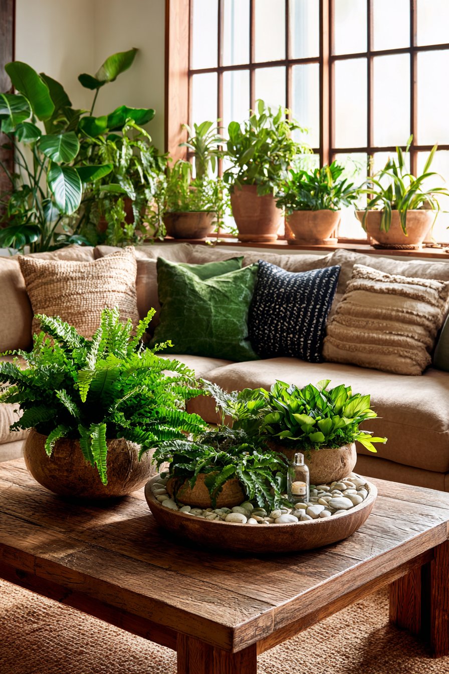 - Limit plants to 5-7 key specimens for average-sized living rooms