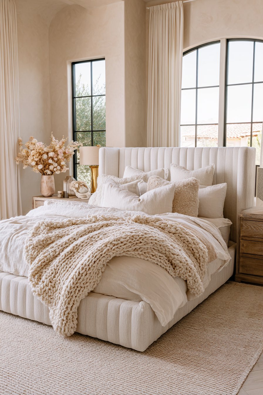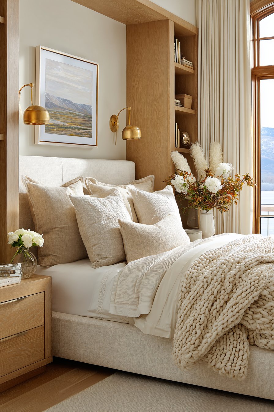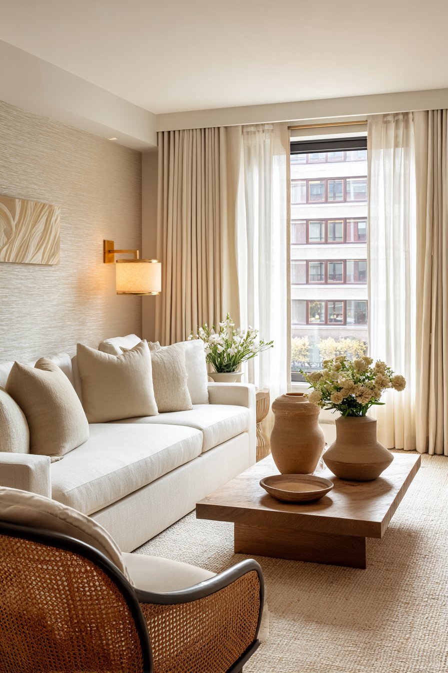 - Layer different beige tones in textiles, walls, and furniture for depth