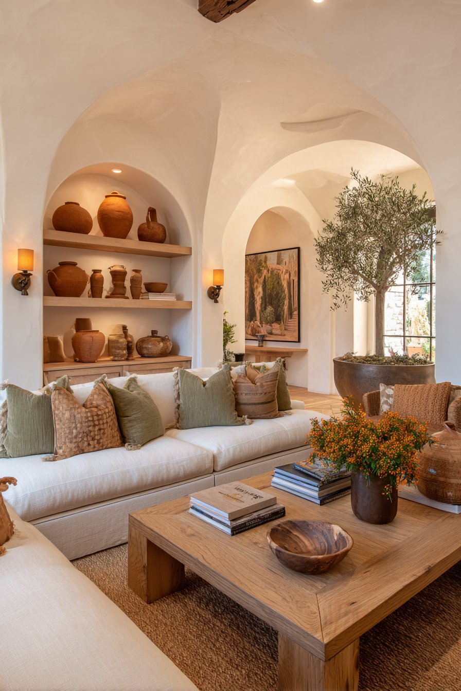 - Use rust-toned ceramics and handmade pottery as coffee table styling
