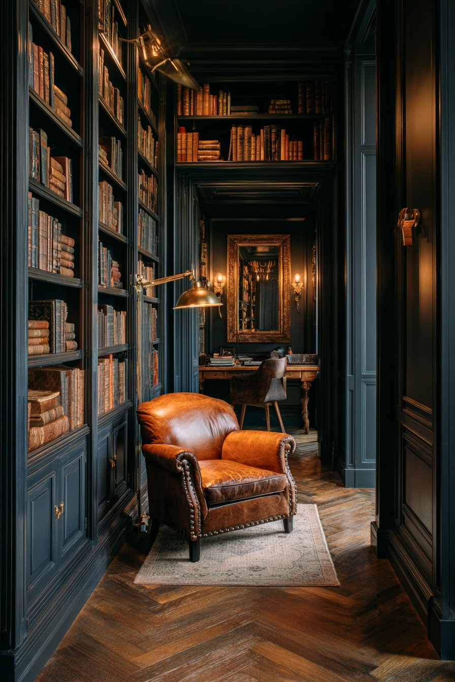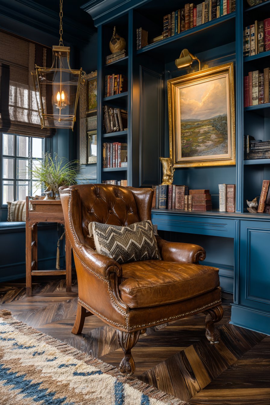 - Pair navy walls with warm brass lighting for maximum visual impact