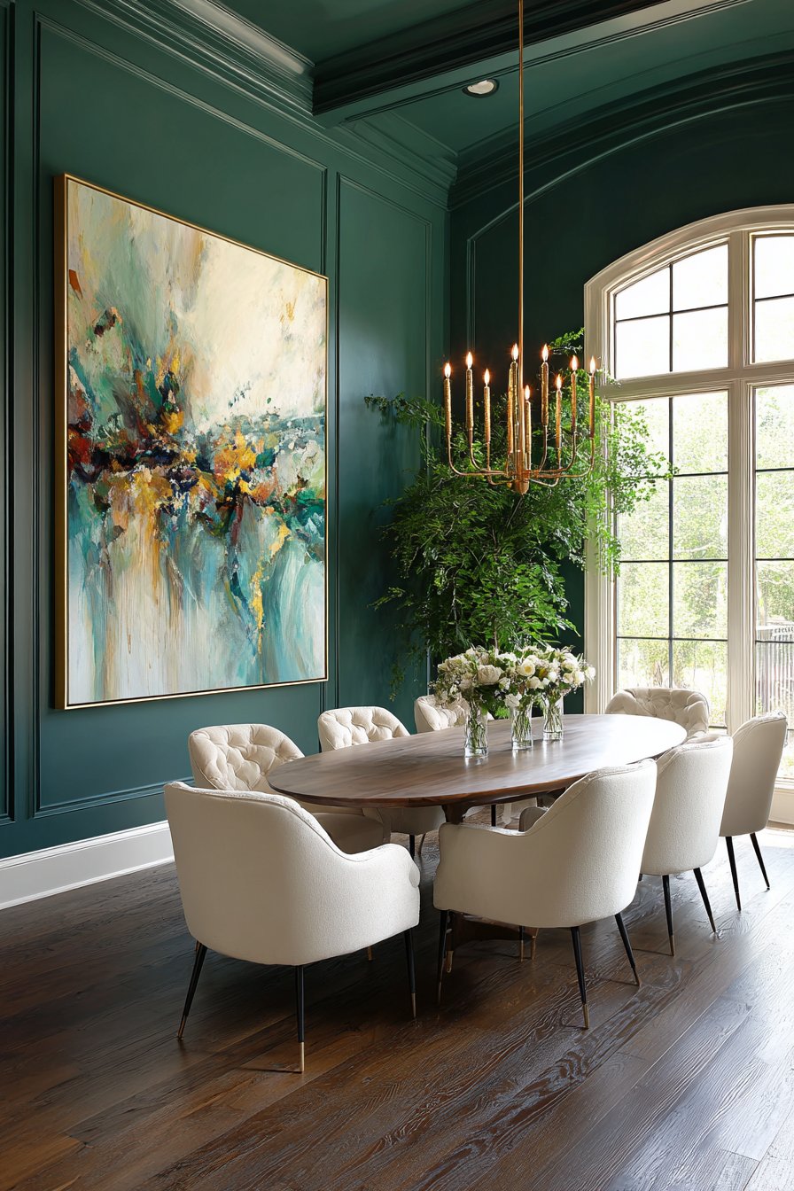 Deep greens like forest, bottle, and hunter work best in rooms with strong natural light or as deliberate moody, dramatic choices in dining rooms and studies. When paired with brass hardware, warm wood furniture, and cream textiles, deep green creates an atmosphere of refined sophistication that gray simply cannot achieve.