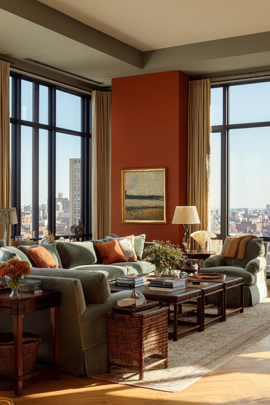 - Layer mustard, terracotta, and rust for a warm maximalist look
