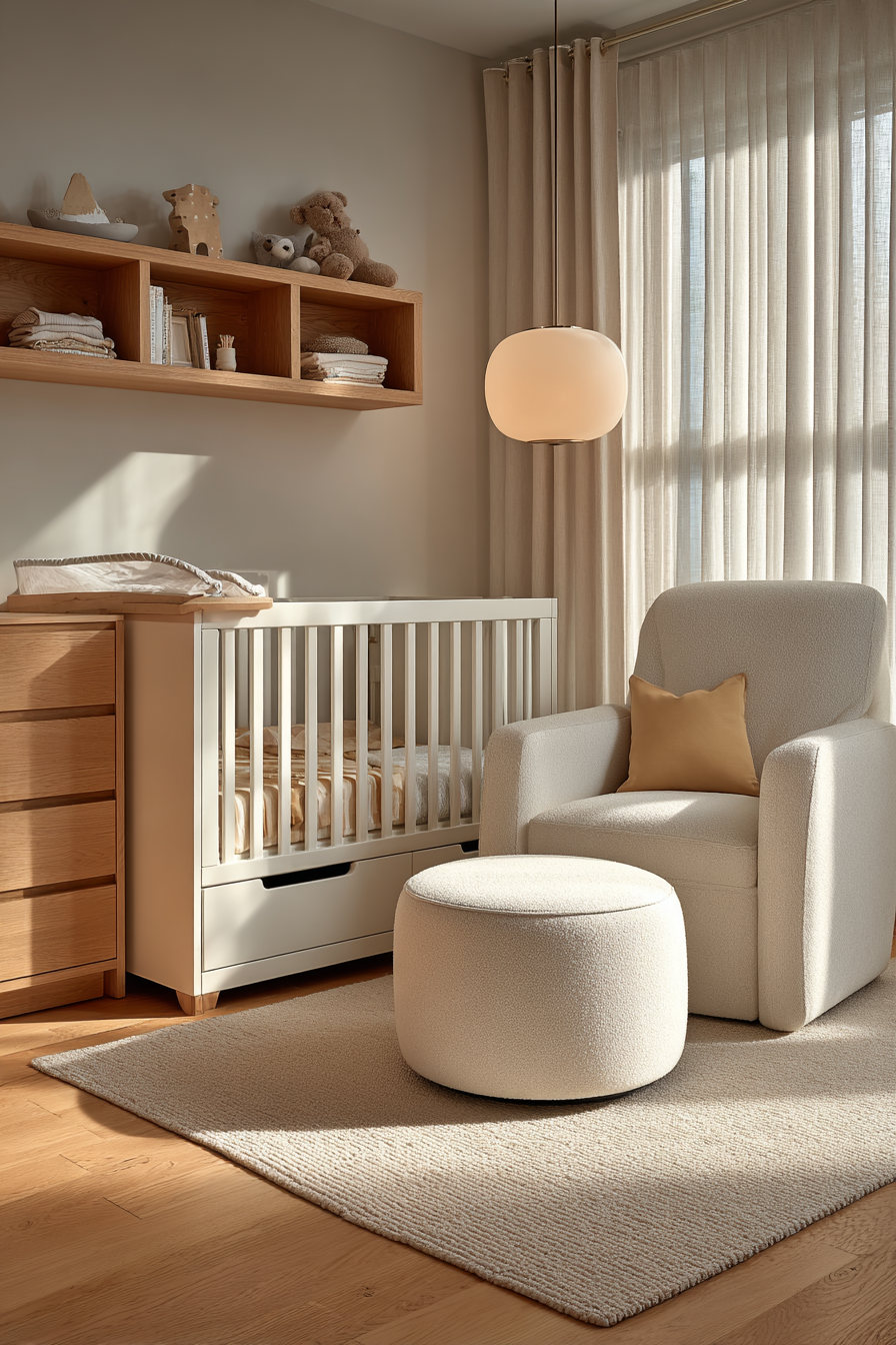 Consider furniture that serves triple duty in your compact space. A glider with storage pockets holds books and nursing supplies while providing a comfortable feeding spot. Ottomans with hidden compartments store toys or blankets while offering extra seating for guests. These pieces reduce clutter while maintaining the room’s functionality and aesthetic appeal.