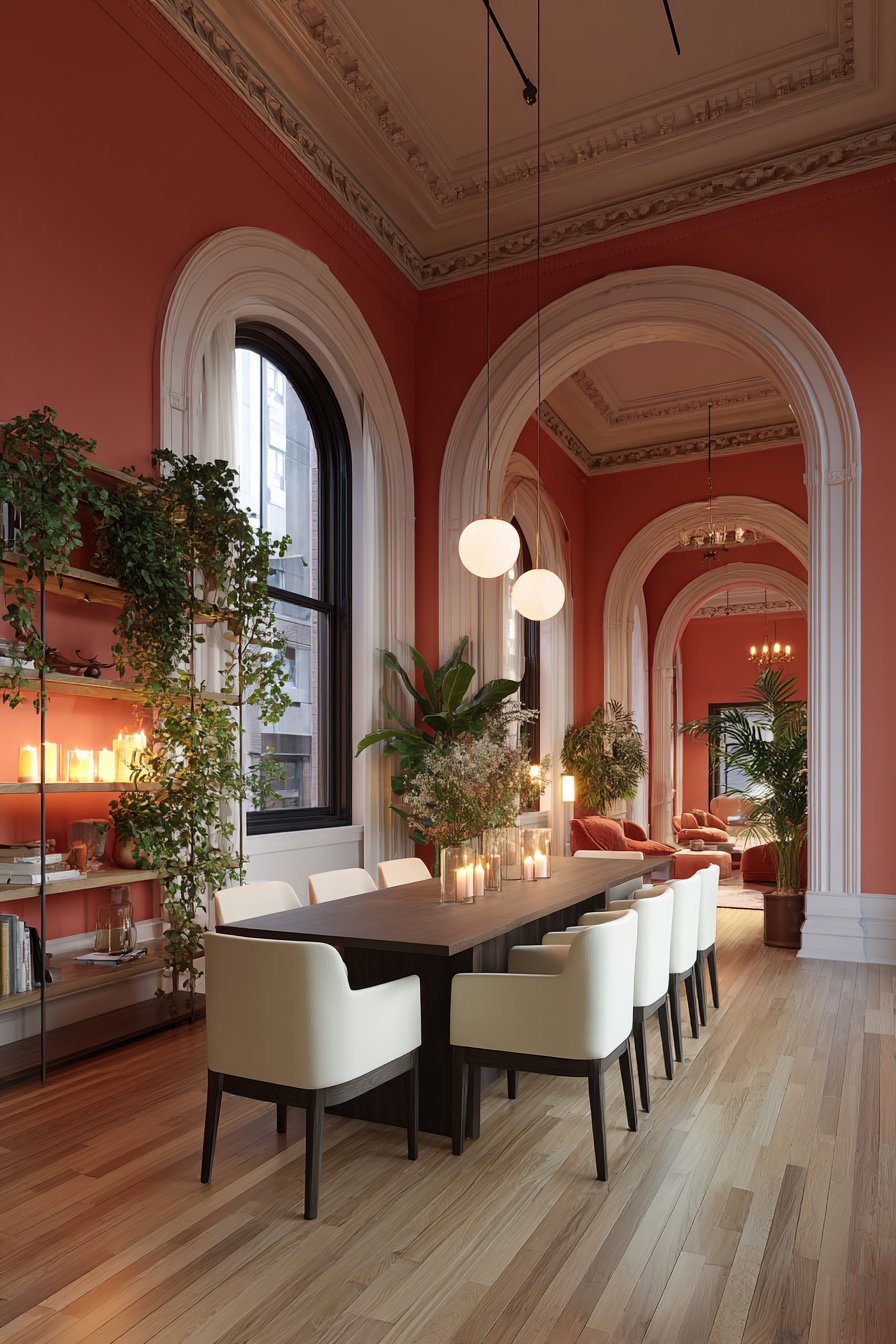 - Pair terracotta walls with crisp white trim for a clean, modern contrast