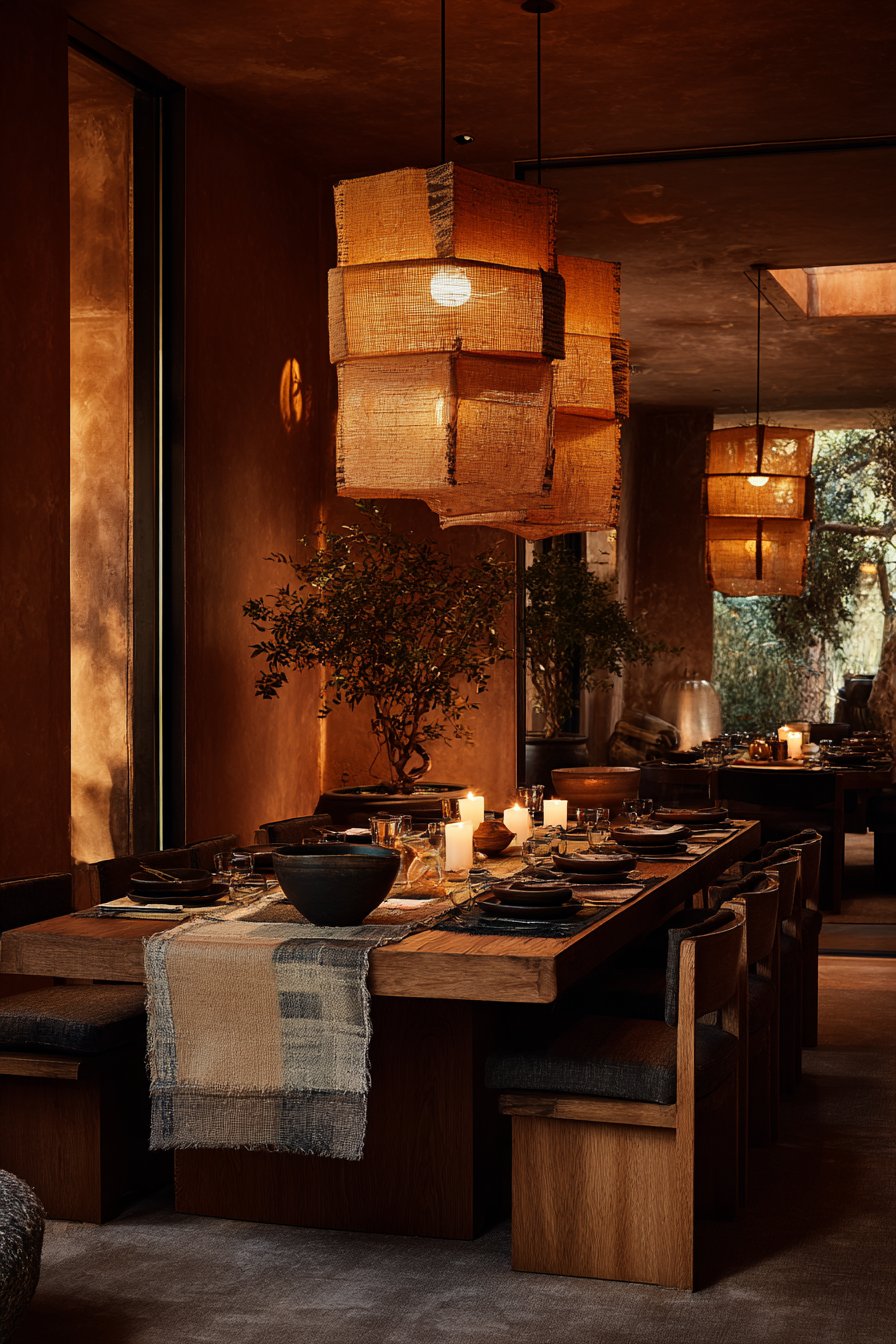 - Layer multiple light sources — floor lamps, pendants, candles — to show off terracotta at its best