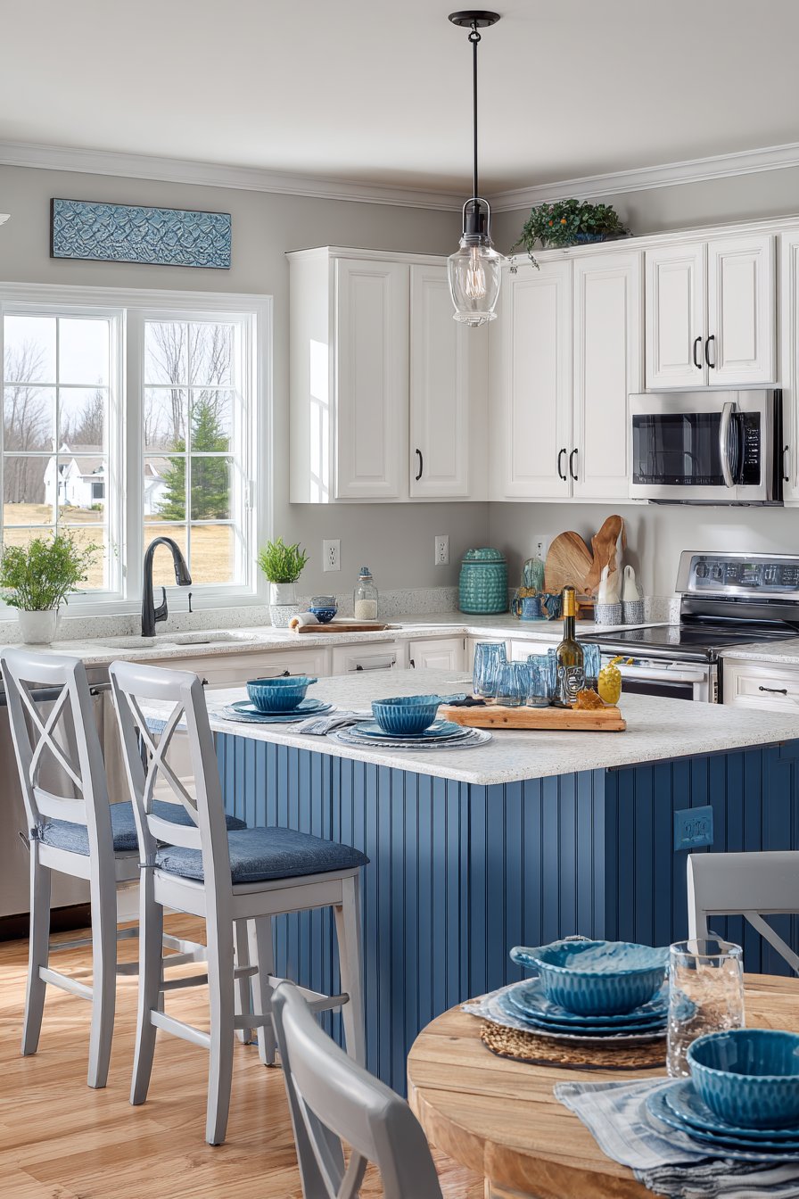 Coastal style brings personality to tiny kitchen spaces successfully. The light colors and natural materials create refreshing environments. Personal style enhances functionality rather than competing with it. This design shows how themed aesthetics work in compact areas.