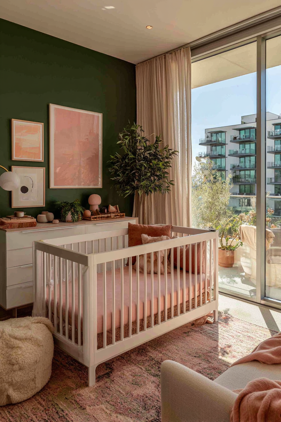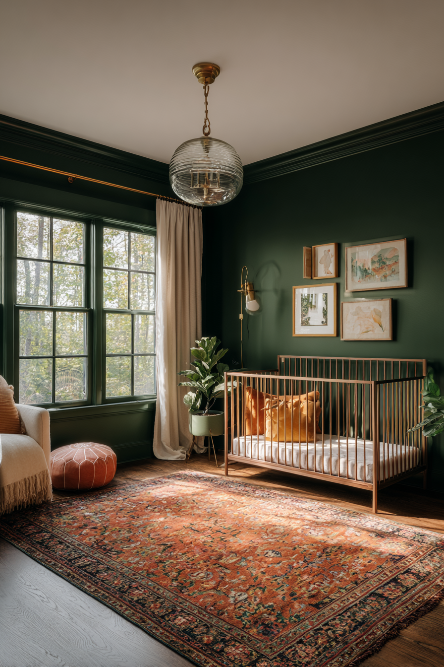 Don’t shy away from jewel tones either. Deep emerald, sapphire blue, or ruby red as accent colors create drama and richness when paired with cream or soft gray walls. These colors stimulate visual development in babies while creating a gallery-worthy aesthetic that adults appreciate during those long hours spent in the nursery.
